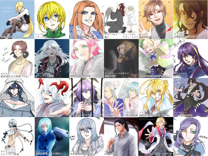 @H_tousokujin わ…エトッ…まとめとか全然やってないですがッッありがとうござい…!少しずつッ紹介して行けるように頑張ります…! とりあえずこれックラシック音楽擬人化の1部のイラストの顔面敷きつめたやつッですッッ…擬人化以外の創作っ子は創作垢の固定の方にッッありますのでもし興味があればッッ……アッ