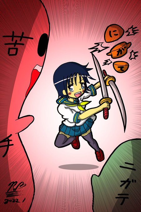 ニガテな事に立ち向かう少女 https://t.co/LYM9Xvn5aL #ARTstreet #MediBang #女の子 #モンスター #学生服 #2022年1月例コンテスト:今年のチャレンジ #カナコミ
