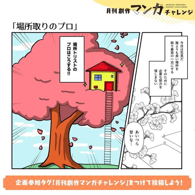 場所取りのプロ #月刊創作マンガチャレンジ #リーダー(悪本) #カナコミ #オリジナル #漫画 #少女 #短編マンガ #花 #場所取りのプロ #桜 https://t.co/v9qtE73erN