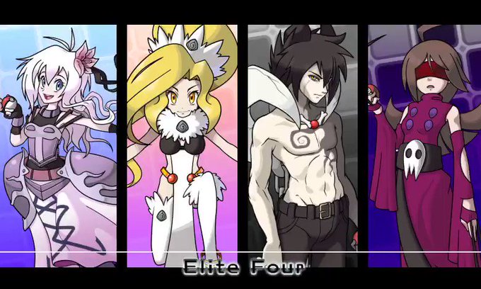 I once made battle intro animations for the Elite 4 of my very own alternate region Nonoenn, featuring the characters of my friends as Pokémon Trainers.
