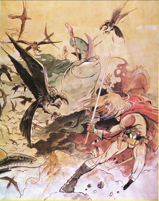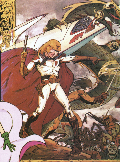 Something similar but this one was never planned to air, more of just a concept. "Space Science Challenge Team(?) Challenger" (宇宙の科学挑戦隊 チャレンダー), created by Ippei Kuri. This one had character designs and descriptions as well as some beautiful images. (Animage 4/79) https://t.co/AV5Oo2wCIR