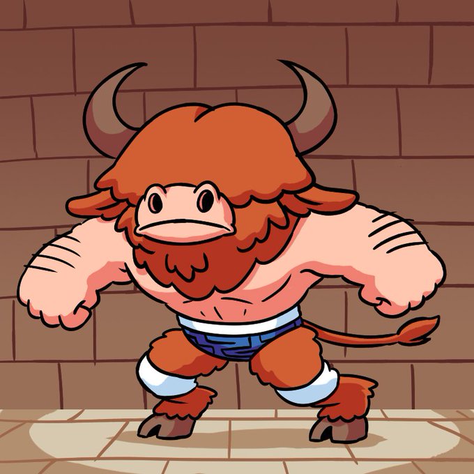 There we go. I called my wrestling Minotaur "Bull Throttle". I can post this drawing now too!