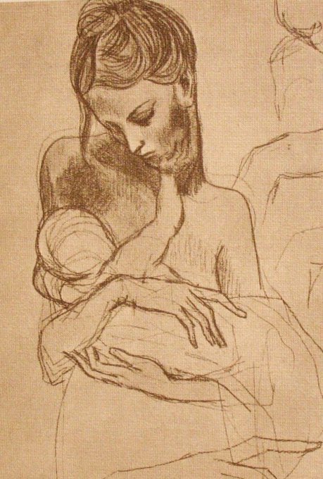 Picasso chose to depict Olga in a neoclassical manner (1920). She disliked his friends & avant-garde works, so the style fitted. He would bring a monumentality to the classical style as shown in his Head of a Woman (1921) as well as his Mother & Child (1922)
