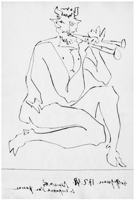 In the first drawing he seeks to capture animal movement, in the 2nd beauty, the 3rd frivolity & finally in the 4th an idea of form as visual mapping. Woman Washing her Feet (1944), Portrait of François (1946), Faun (1947) & Composition (1948)