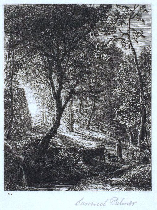 Palmer was a big believer in plein air (outside) painting. He has left us detailed sketch books. View from Rook’s Hill, Kent (1843), Evening in Italy (1845), Christian Descending into the Valley of Humiliation (1848) & Kensington Gardens (c1848)