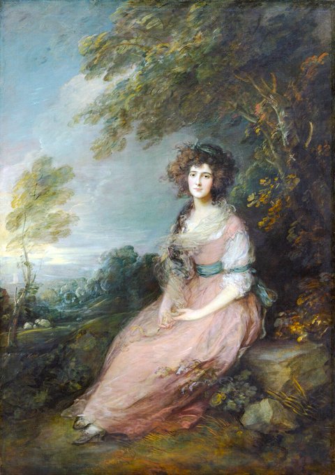 This is one of Gainsborough’s most beautiful portraits. It’s of Elizabeth Linley, Mrs Richard Brinsley Sheridan (1785/7). The artist constantly sought to integrate nature into his portraits & in this example he achieved that superbly.