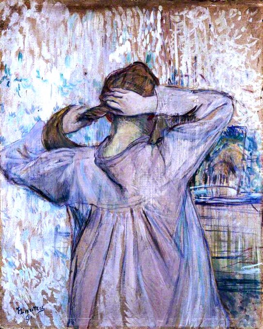 Lautrec had an allowance from his family & fortified that with sales of prints. The Streetwalker (1890-1), Mlle. Dubai Playing the Piano (1890), Moulin Rouge, La Goulue (1890) & Combing (1891)