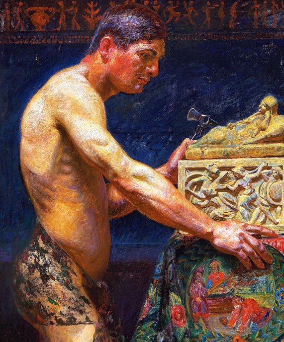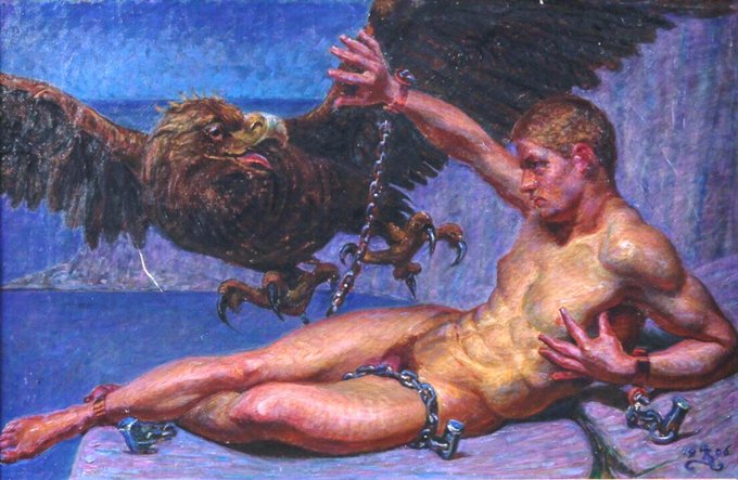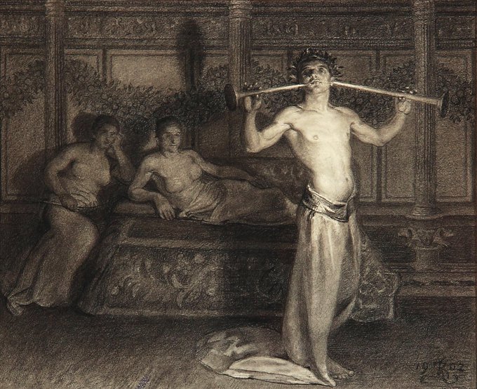 These works explore the painter’s interest in the male form. Zahrtmann was living during a period of extreme intolerance & had had friends suffer from state persecution during his 20s simply for being gay. Nero (1902), An Etruscan (1908) & Prometheus (1906)