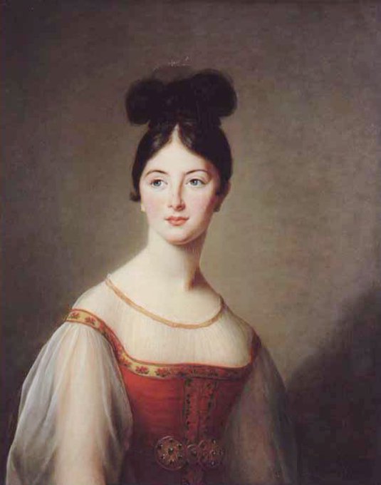 Once her name was removed from a list of counter-revolutionaries she was able to return home (1802). Queen of Naples & her Daughter (1807), Portrait of Madame de Staël (1809) & Portrait of Angelica Catalani (nd). Her work is more classical reflecting the now fashionable style