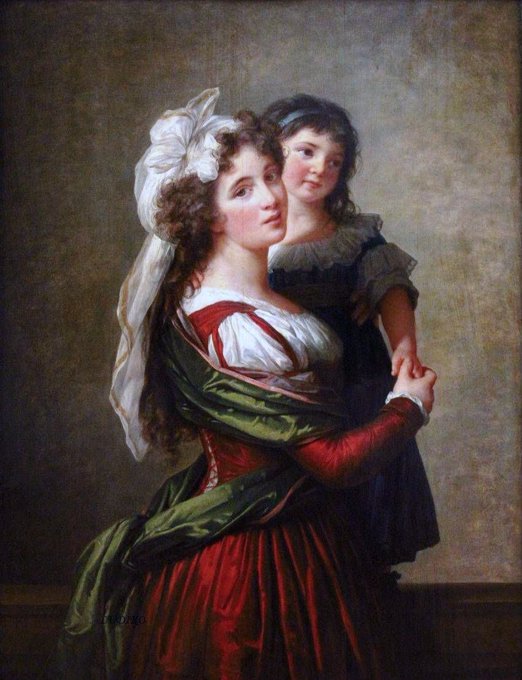 A theme in her work was the painting of self-portraits. These are ravishing portrayals & may have served as ‘calling cards’ for her business. She thus demonstrates how good she can make sitters look. Count Stroganoff, Madame Rousseau & Daughter & Self-Portrait with her Daughter