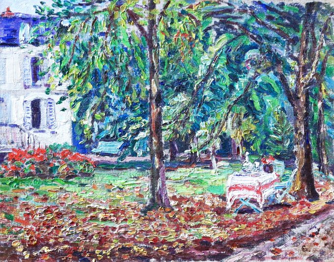 Tunis (1905), Rapallo (1905-6), Le Jardin St Cloud (1906) & Snow at Kochel (1909) track her rapid development in style from almost sculptural dark landscapes to her bright, flattened Expressionist approach.