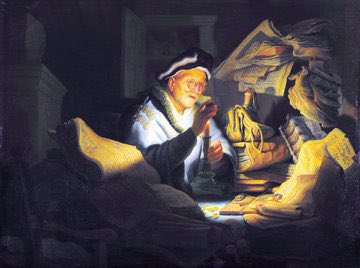 He was back in Leiden with his mate Jan Lievens & they opened a studio together (1624). He took students from 1627 (they had to pay fees). Rembrandt in his studio (1626-8), Tobit accusing Anna (1626) & Parable of the Rich Man (1627). The latter is an early masterpiece of light