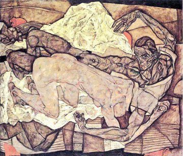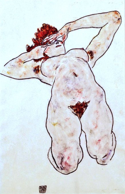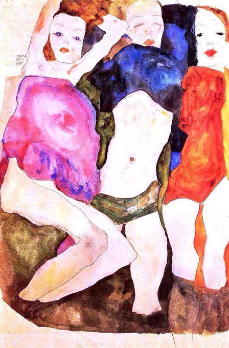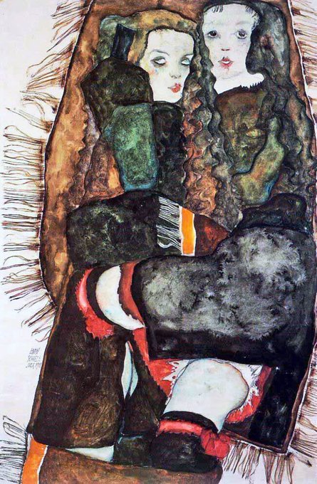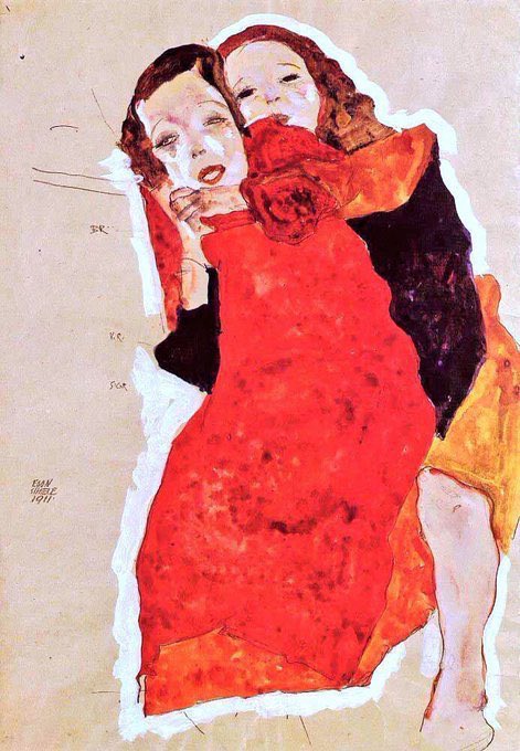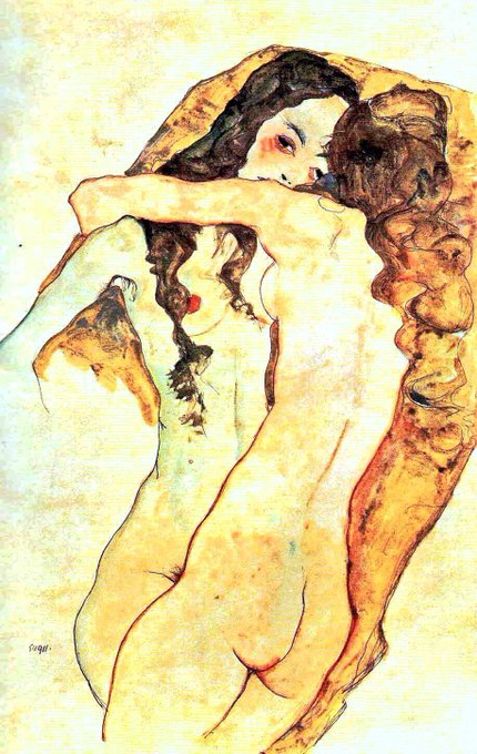 In 1911 he met Wally who would become his muse. Schiele found the bourgeois environment of Vienna stifling & so he moved with her to Krumau in Bohemia. However he was driven out by the locals. Here are a series of lesbian works from 1911