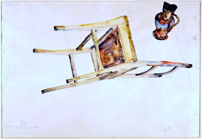 He was jailed for a month & created a series of works of the experience. Charges of seduction were dropped. Prison Drawing (1912), Little Tree (1912), Organic Movement of Chair & Jug (1912) & Valerie Neuzil (1912)