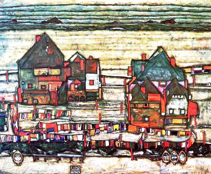Houses with Laundry (1914), Man & Woman (1914), Portrait of Friederike Maria Beer (1914) & Self-Portrait (1914)