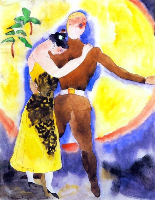 Soldiers & sailors were a particular interest in Demuth’s art. I’ve only included the family viewing versions! Zinnias (1915), The Drinkers (1915), Soldier & Girlfriend (1915) & Mt Gilboa 5 (1915)