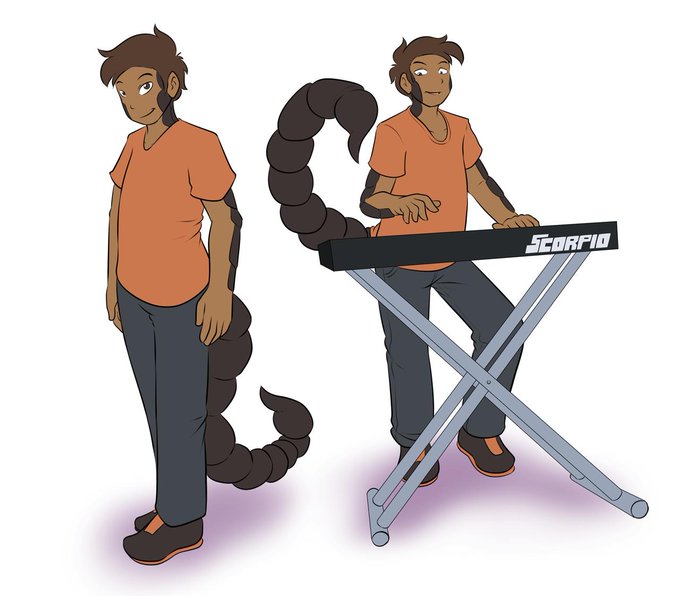 Commissions for Venetos Inkognito of his band members for his band ‘The Out-springs’. There’s one more member, Liam the hyena hybrid on the drums.