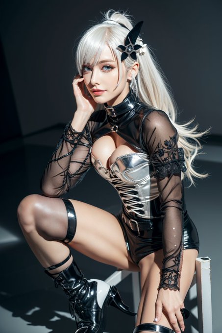 #stablediffusion ラバーフェティッシュな銀髪眼鏡ゴシック