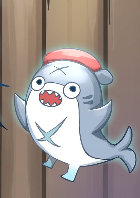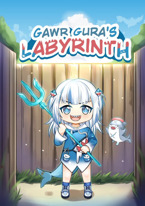 making a fake game poster for gawr gura, the character design is really suited for the game with a cute theme <3<3