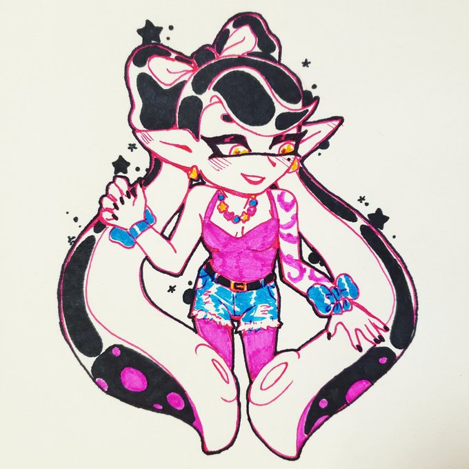 Art trade with @/demongirlren on Instagram! I love these tropical vibes... #splatoon2 #splatoonoc #octoling