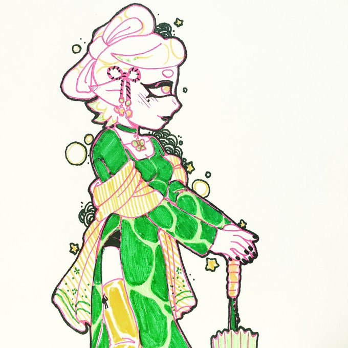 Art trade for @AntheaArtsy !! I love this character so much... limesquid... this makes me want to eat some more pho! #splatoon2 #splatoonoc #arttrade #lime #inkling
