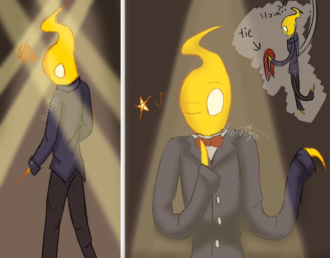 I made some fanart of Yellow Fluorescent Glitter (since I loved her design), and she's an OC made by @/Mint_0978!