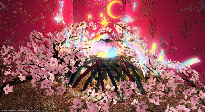 まりーさんの華やかさと気品を感じる色使い。対象色のグラデーション、球体に虹のエフェクト、花びらが舞ってとても美しいです。満開の時は一瞬。でもこのお部屋は時を止めて、いつでも一番きれいな姿で迎えてくれます。