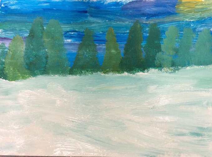P4 really enjoyed exploring tone and texture with acrylic paint! Beautiful winter scenes p4!