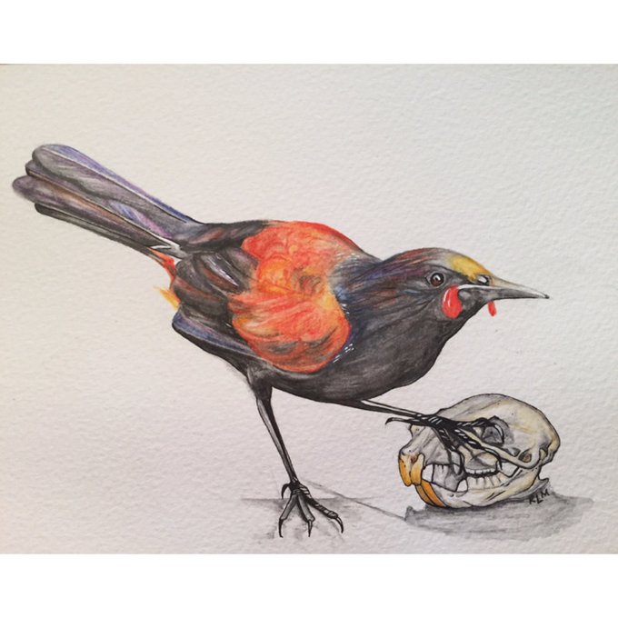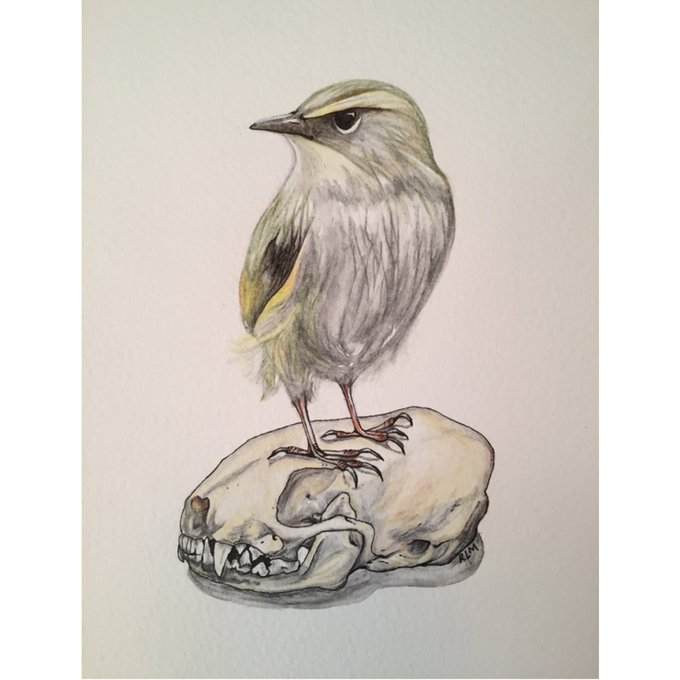 I’ve got #art prints to sell! My pretty #NewZealand #native #bird babies posing with the #skulls of their introduced predators. Are these hashtags seamlessly integrated into the text enough? 😬
