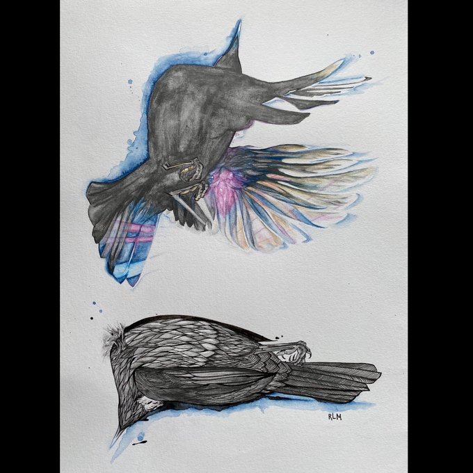 Tuī study in Aquarelle, ink, coloured pencil ⬇️ A bird of paradise native to Aotearoa, my personal fave