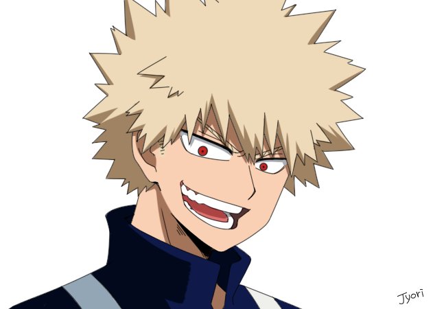 勝茶ワンドロのお題で描いた爆豪VS麗日の加工前の爆豪が出てきた