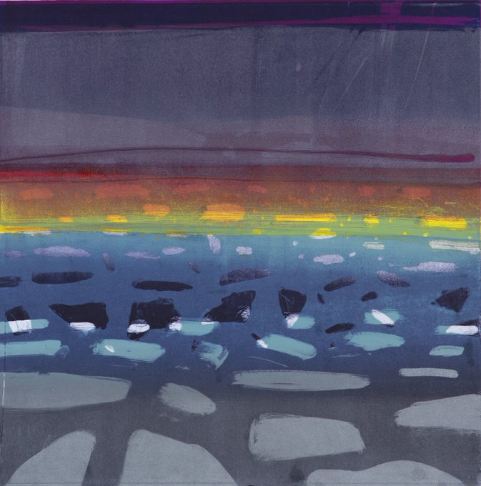 Barbara Rae, Night Crossing - Peel Sound, monotype.