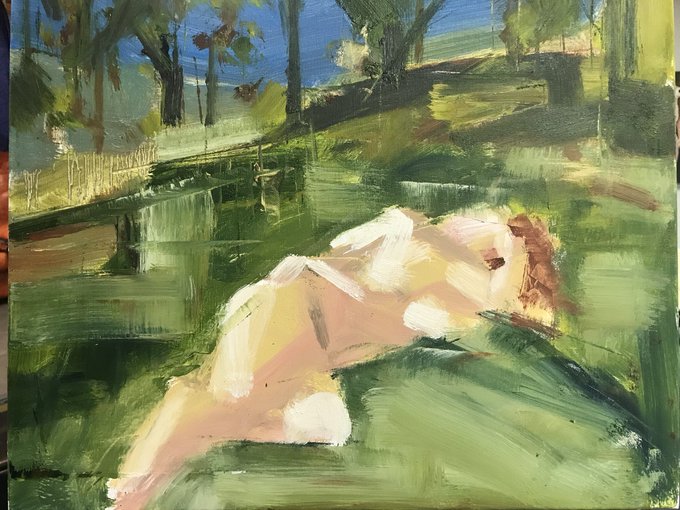 Outdoor nude from this last September. Working plein air with a model is yet another figure drawing challenge! #artbyroyce #artforsale