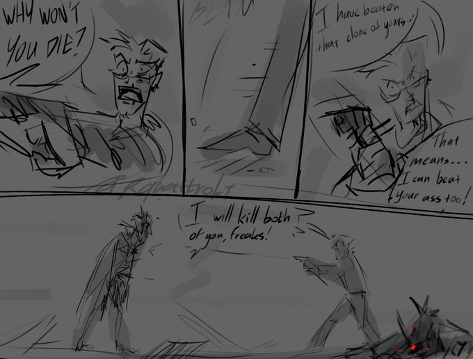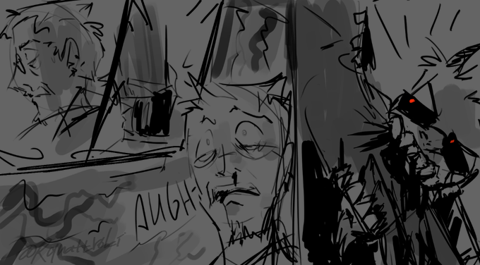Alrighty, here's the cringey sketches of what I got before making that full coloured piece, y-yeah... No wonder people say they don't like when I try to actually execute stories in text or comics.🫠