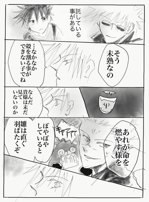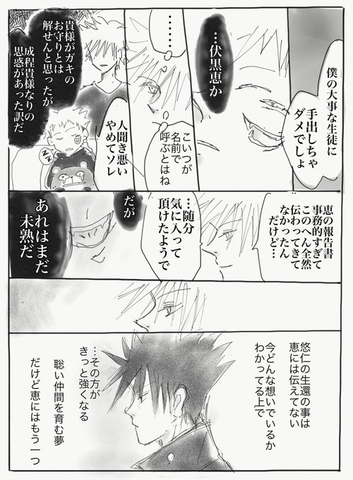#宿伏 #五伏 再録です。祝2話再放送。 宿さまとごじょ先生の互いに頂点で互いに干渉しない関係がすきです。 そこに恵を絡めるのが好物です きくふく食べたい…