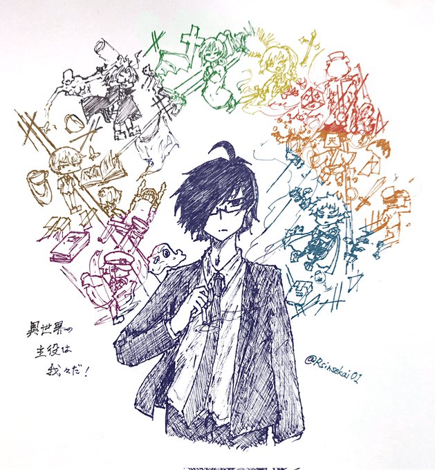 異世界5周年ということで過去絵ですがこっそりお祝いしときます(激遅マン) 第一章からいつまでも抜け出せないオタク……