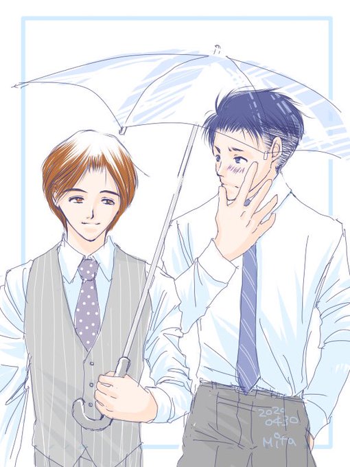 🍩🧁ファンアート。的な… のずえさんととがわくん。 傘☂️適当すぎた…