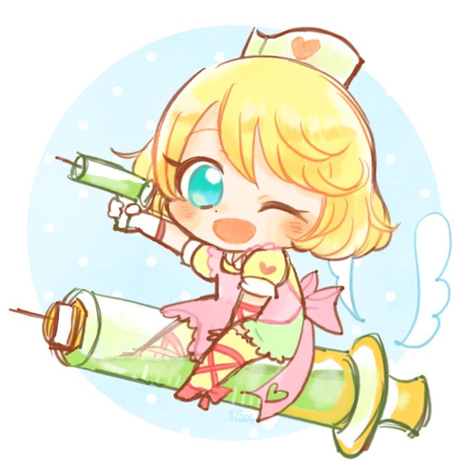 #モンスト深夜のお絵かき60分一本勝負 主催者様 @mnst_onedro お題:キャラの特徴を残したままのひよこ化、ニワトリ化 ナイチンゲール🎀🌟