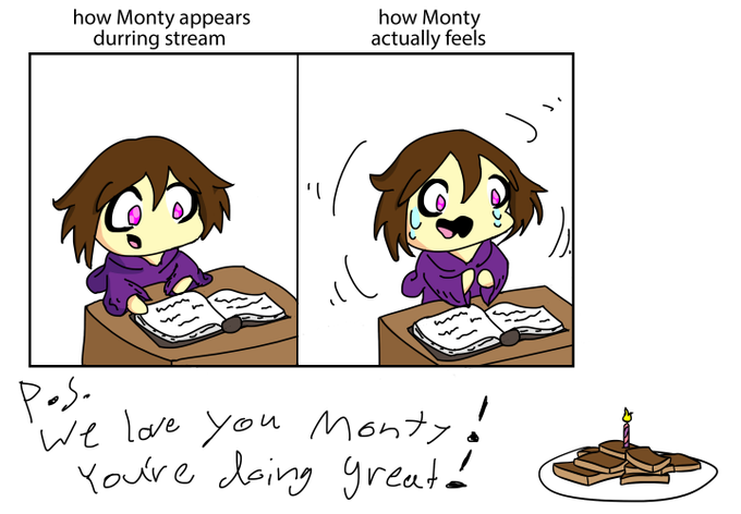 Wow, it's already @MontyGlu 's birthday! To celebrate I colored the first fan art I ever made of her. Also, I baked some celebratory brownies for the @_Unexpectables_ 1 year anniversary. Why brownies? Because they're fucking delicious!