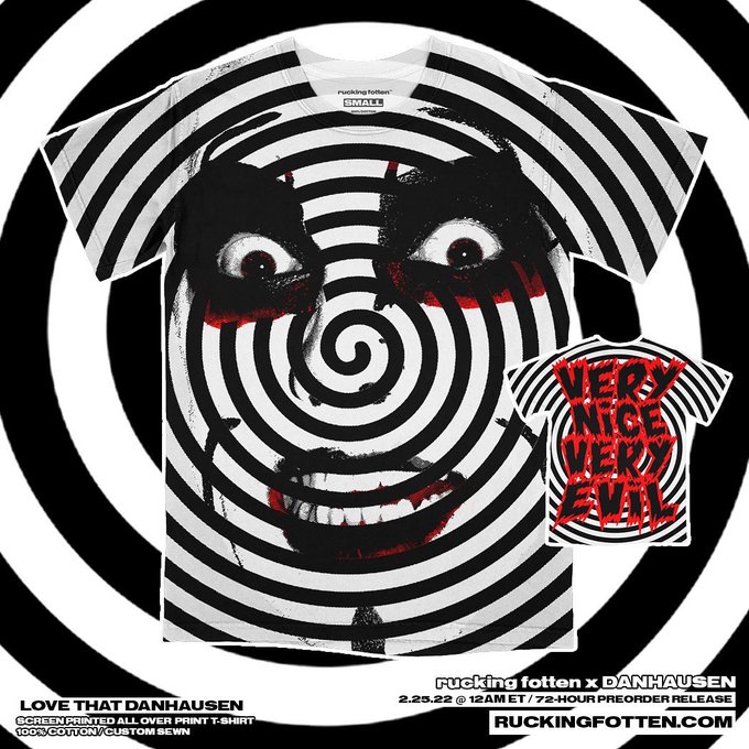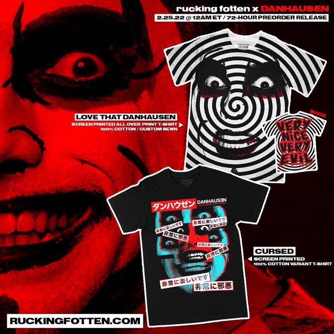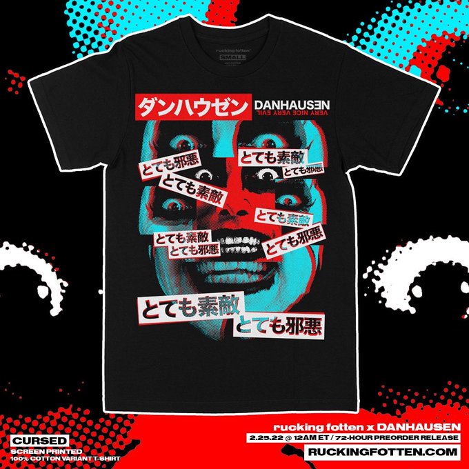 Featuring the VERY evil LOVE THAT DANHAUSEN All Over Print tee and the VERY nice CURSED tee, available for 72-hours only!