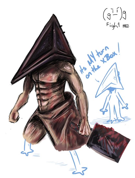 Drawpile sesh resulted in Pyramid Head doodle and @lxnes_art gave him sexy feet + extra smol pyramid head