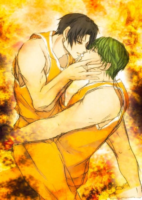 #イラストを4枚貼ると秋風に乗って絵柄を好いてくれる人の元へ届くらしい 黒バスのチャリア腐(両方)を描いてます。
