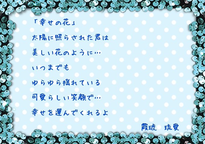 「幸せの花」 太陽に照らされた君は 美しい花のように… いつまでも ゆらゆら揺れている 可愛らしい笑顔で… 幸せを運んでくれるよ #霞琥琉愛 #詩 #ポエム