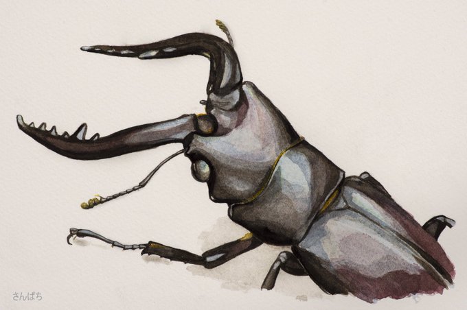 #画像を4枚晒したらrtがきてフォロワーがぶわーって増えると聞いて 水彩で虫などを描いてます。 コクワガタ ノコギリクワガタ グルクマ カブトムシ