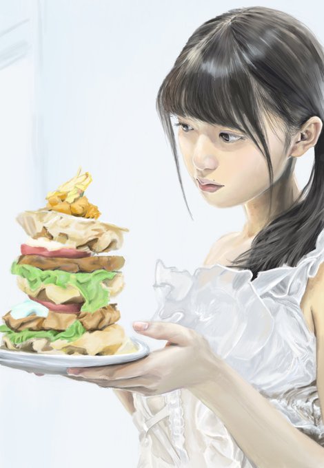 お皿に乗っている食べ物・ひらひらのレースの服と今回難敵ばかりなので、どう手を入れていくか迷いますね🌀