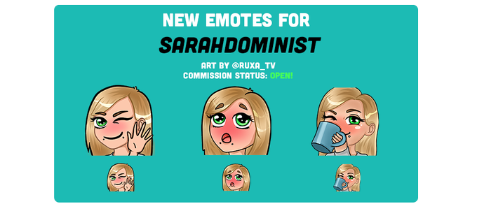 Finished a new batch of emotes for Sarahdominist on Twitch: https://t.co/4tqcM0Yvhb she's an amazing streamer! I felt honored to make the emotes for her 🥰 On to the next commission for @murphbeverly ! #twitchemoteartist #art #commission #twitch #streamer #artist #emoteart