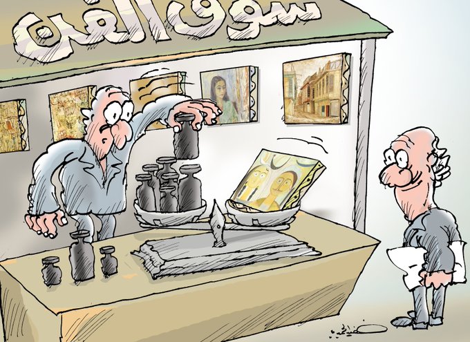 The Aesthetic Value of Art. This week's cartoon on #artmarket by #Baghdad illustrator Khudair Alhimyari, for Ruya. https://t.co/CZJRpSrKZw