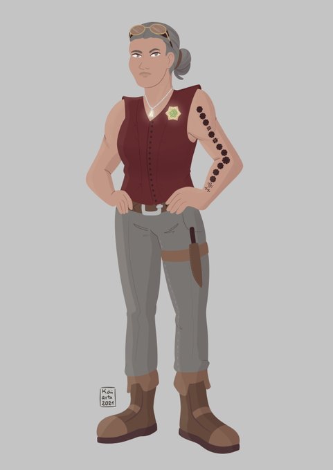 @HLeeDavisWriter Karis does. I don't want to give away too much, but it's connected to the six-pointed brooch she wears. (It's not a sheriff's badge.)