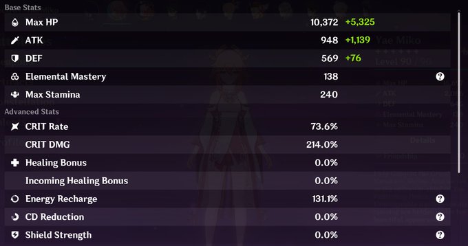 I feel like my Yae Miko is my first Genshin character that I feel good calling her build complete. I want to get her a better circlet, but otherwise she's set.