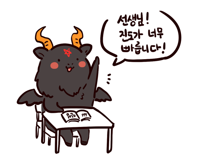 사탄이 한수 배우고 가는 짤. 사탄은 염소머리인게 귀여움ㅎ.